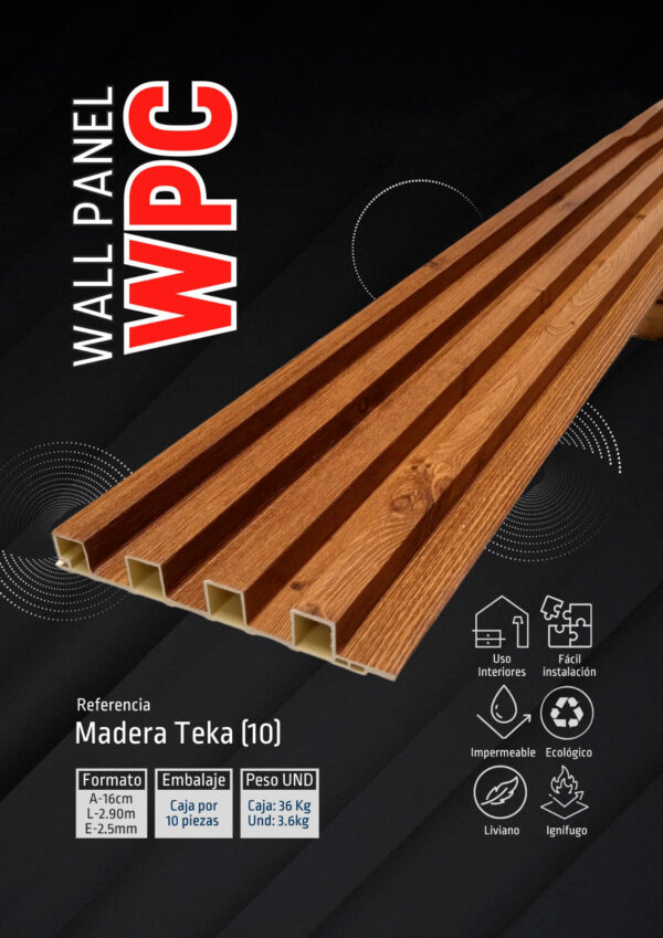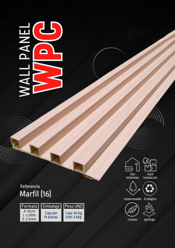 Es un material que combina material sintético y fibras de madera. Se utiliza en aplicaciones de diseño interior, decoración y acabados arquitectónicos. Está diseñado para tener la apariencia y textura de la madera natural a través de una película adherida a la superficie.